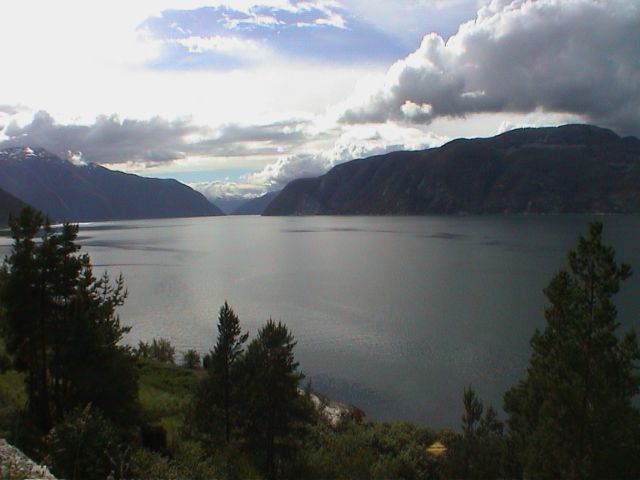 Runter nach Flåm mit verrücktem Wetter. Wir selbst im dicksten Regen. Der Auerlandsfjord in der Sonne.