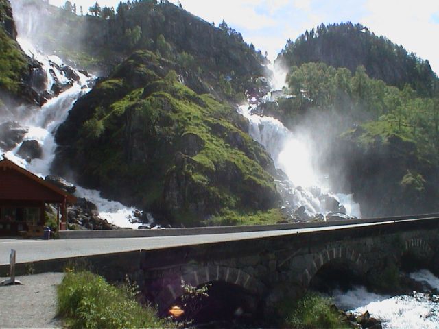 In der Nähe von Sjoa-Schlucht Ridderspranget-, ein Aufenthalt lohnt sich. Fußweg ca. 150 m von Parkplatz, 25 m tief.